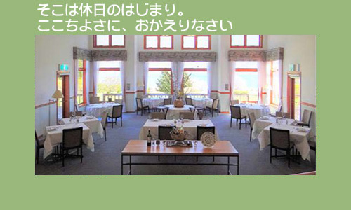 オーベルジュは江戸時代でいえば「旅籠」です。 わらじを脱ぎ、足を洗って一風呂あびる。 そして心づくしの食事。 シェフは野菜を育て、魚や肉を厳選して、フランス仕込みの腕で、おもてなします。 洞爺湖を一望し、温泉街を向こう岸に見るこの地は、静かな自然に囲まれています。 春には 湖面からの優しい風を受け、夏には 湖面が輝き、秋には 紅葉が映り、月が湖面に昇ります。 冬には 湖面に星が降り、一面の銀世界に音を無くします。